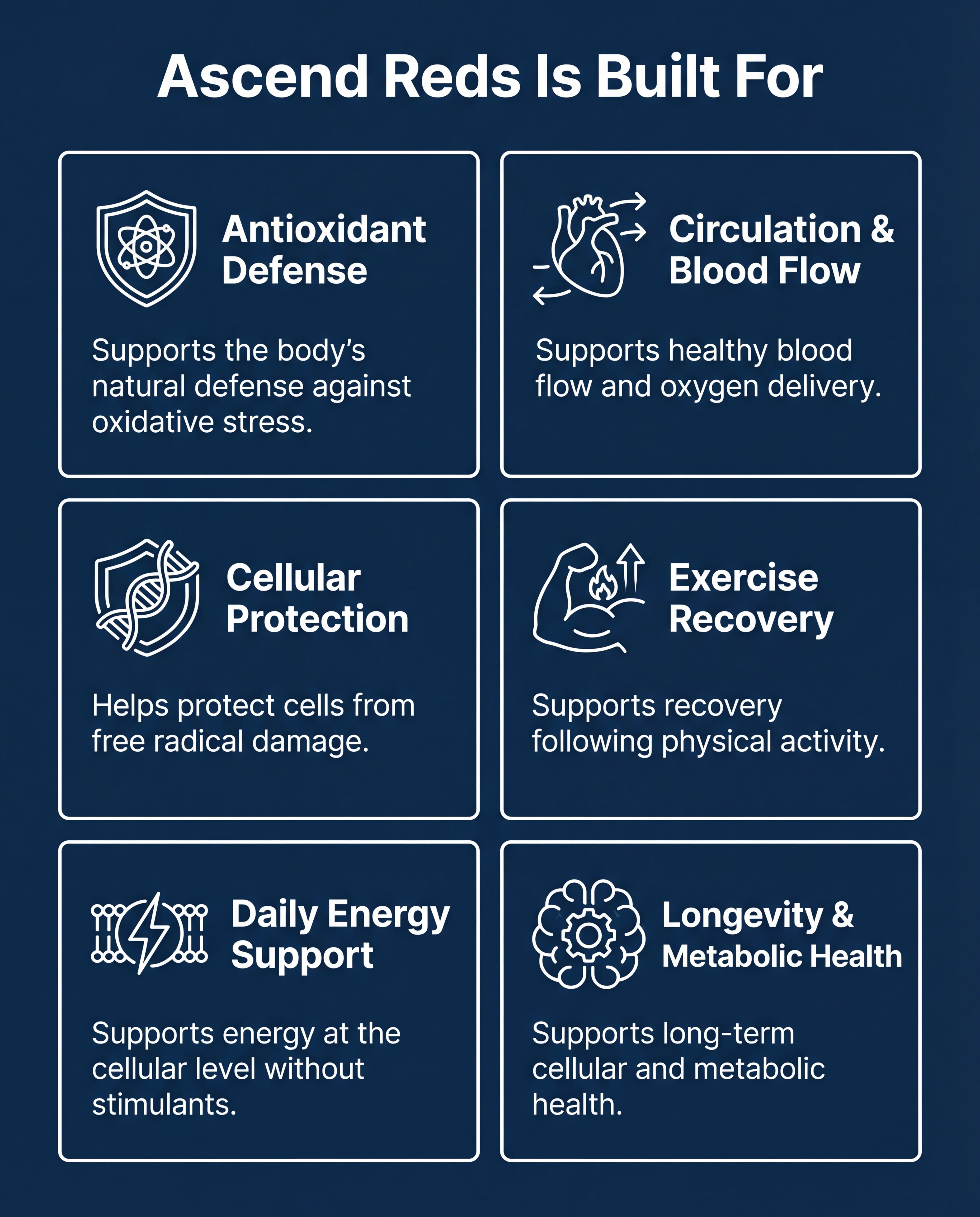 2,000mg of beetroot, berries, grape seed, pomegranate & more to fight oxidative stress and support circulation.