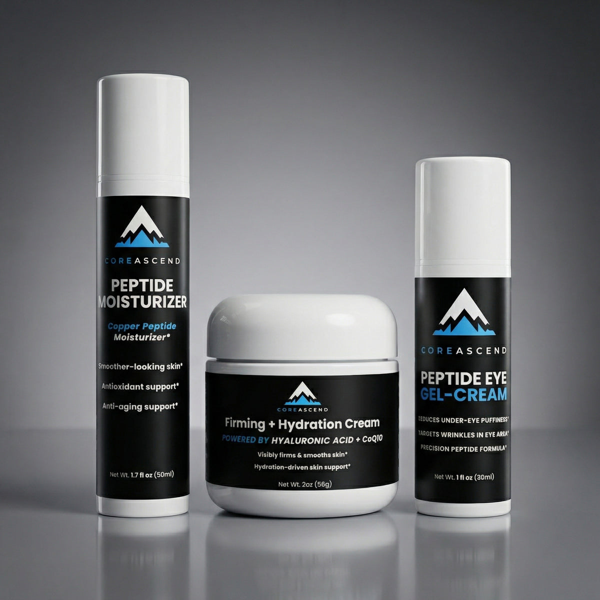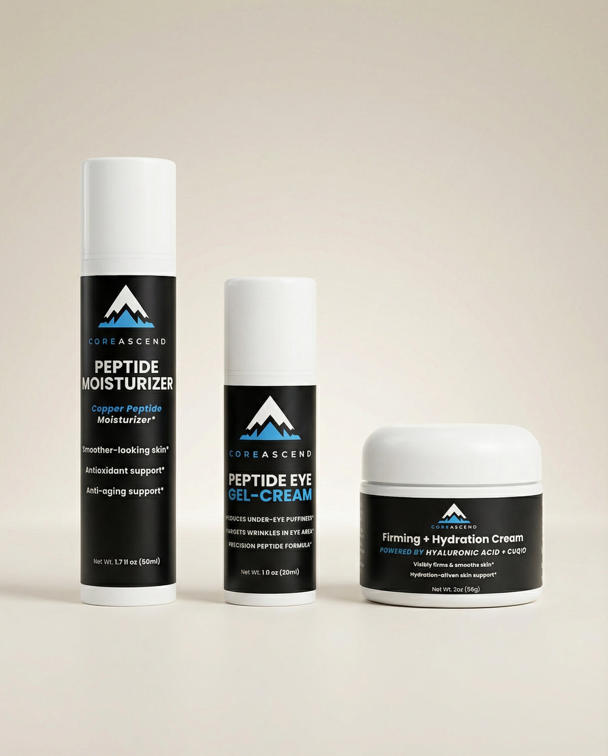 A complete peptide-powered system designed to hydrate, repair, and visibly improve skin quality over time.